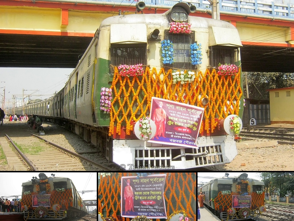 122nd Calcutta Return Day of Swami Vivekananda --- Great monk Swami Vivekananda had delivered the historic speech in Chicago at the Parliament of the World's Religions in 1893 but returned to India four years later after extensive travelling through the US and UK, delivering lectures. During his return he travelled from Madras (now Chennai) by a steamer, which docked at Budge Budge on the banks of River Hooghly. On February 19, 1897 he travelled by train from Budge Budge to Kolkata. So to commemorate the 122nd 'Calcutta Return Day' of Swami Vivekananda, Eastern Railway ran a galloping EMU Special train, from Budge Budge to Sealdah on 19th February 2018, with floral decors & chantings of Vivekanada shloks. An initiative by ER along with Budge Budge Civic Authorities & Ramakrishna Mission. Roy was present at Ballygunj Jn. to cover the event on behalf of TrainTrackers.