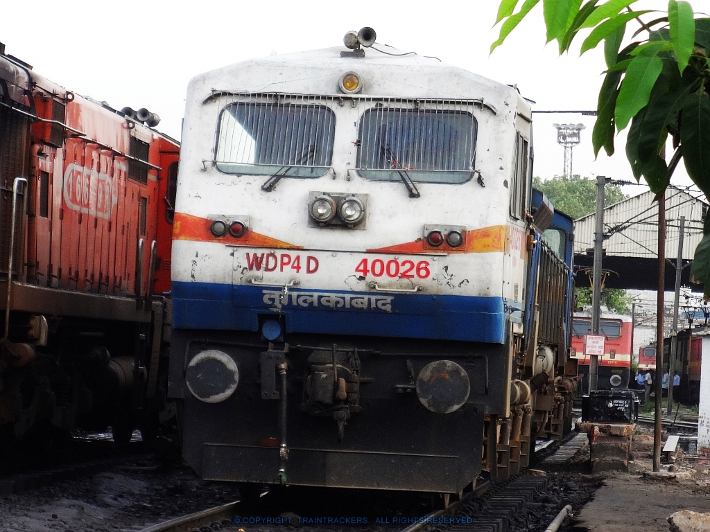 40026-WDP4D-TKD --- One of the earliest dual cab version of WDP4 belongs to Tughlakabad shed was spotted taking a nap at NewDelhi Trip Shed. Framed by Somsubhra Das. D.O.P. - 10th July 2014.