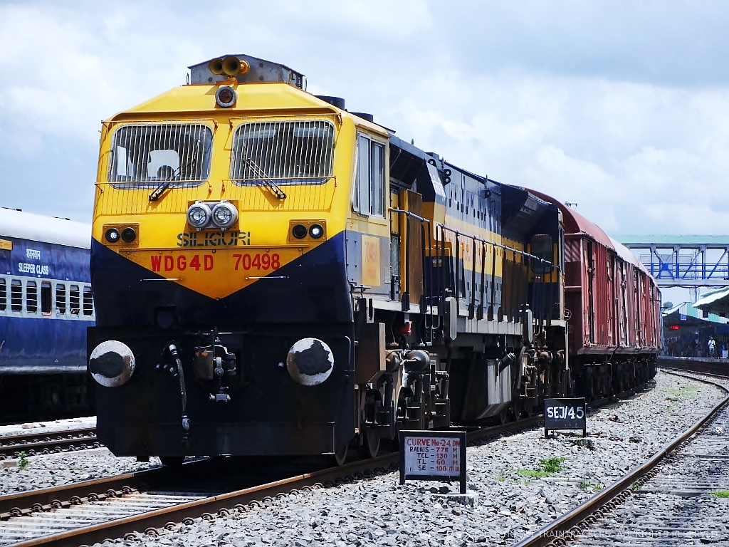 70498-WDG4D-SGUJ --- The Siliguri star was shinning brightly under the mid-day sun on an otherwise cloudy day at Kishanganj. Somsubhra Das framed this giant while it was moving through the loop with loaded BCNHL rake. D.O.P. - 6th August 2016.