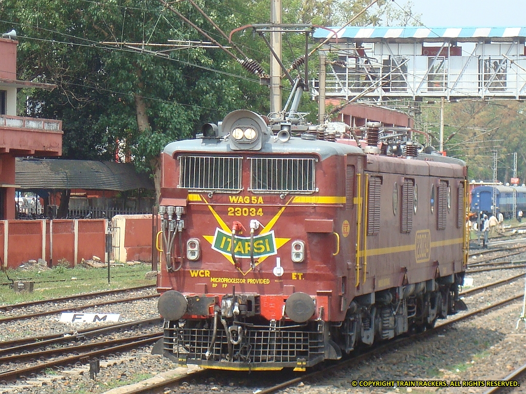 WAG5A-ET-23034 --- This beautiful WAG5 of Itarsi was spotted by Somsubhra Das at KGP while it was roaming around on 5th Of May 2011.