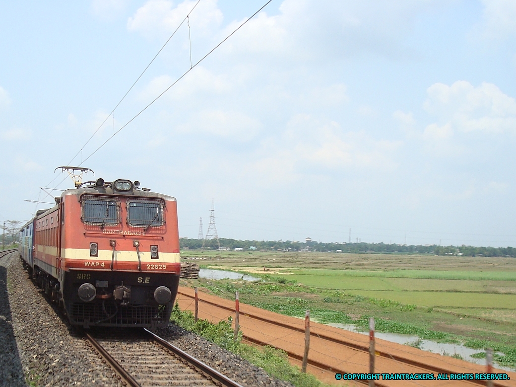 The SRC beast while negotiating the huge curve after Kharagpur roars its way with the Howrah bound DN Geetanjali Express in tow. Sam - 27.04.2011.